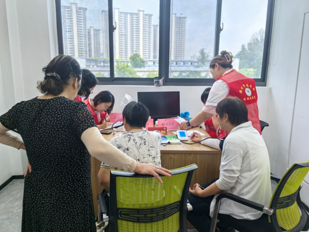 活动当天上午8点不到,社区二楼活动现场已热闹起来。血压、血糖和尿酸测量区域前,居民们有序排队,药师们熟练地为大家进行检测,一边操作一边耐心询问居民的日常健康状况。“阿姨,您的血糖稍微有点偏高,平时要注意控制糖分摄入,少吃甜食,多吃蔬菜。”检测结束后,药师针对每位居民的检测结果,逐一给出个性化的用药建议和健康生活方式指导,还贴心地提醒大家定期监测健康指标,不少居民认真记录,不时点头表示认可。
