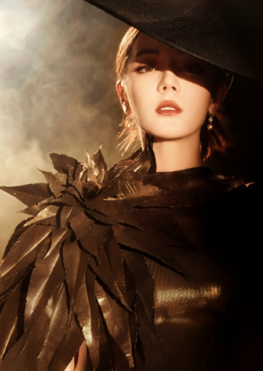 一套是RobertWun2025秋冬高定黑色烫金鱼尾裙,搭配复古礼帽与烟斗道具;另一套是内场换上的DIOR极简黑色吊带裙,搭配齐刘海黑长直发型。